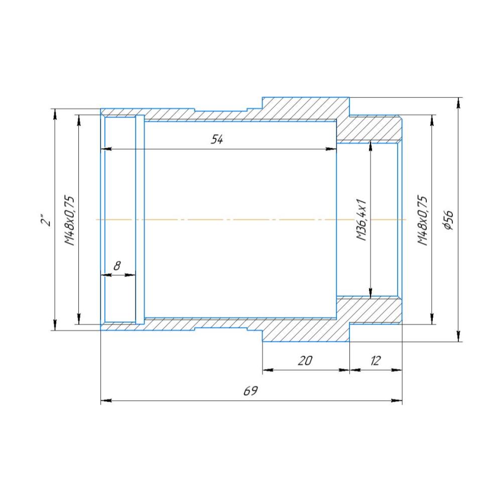 2″ telescope port to M36.4x1 female (M48x0.75 male) thread adapter