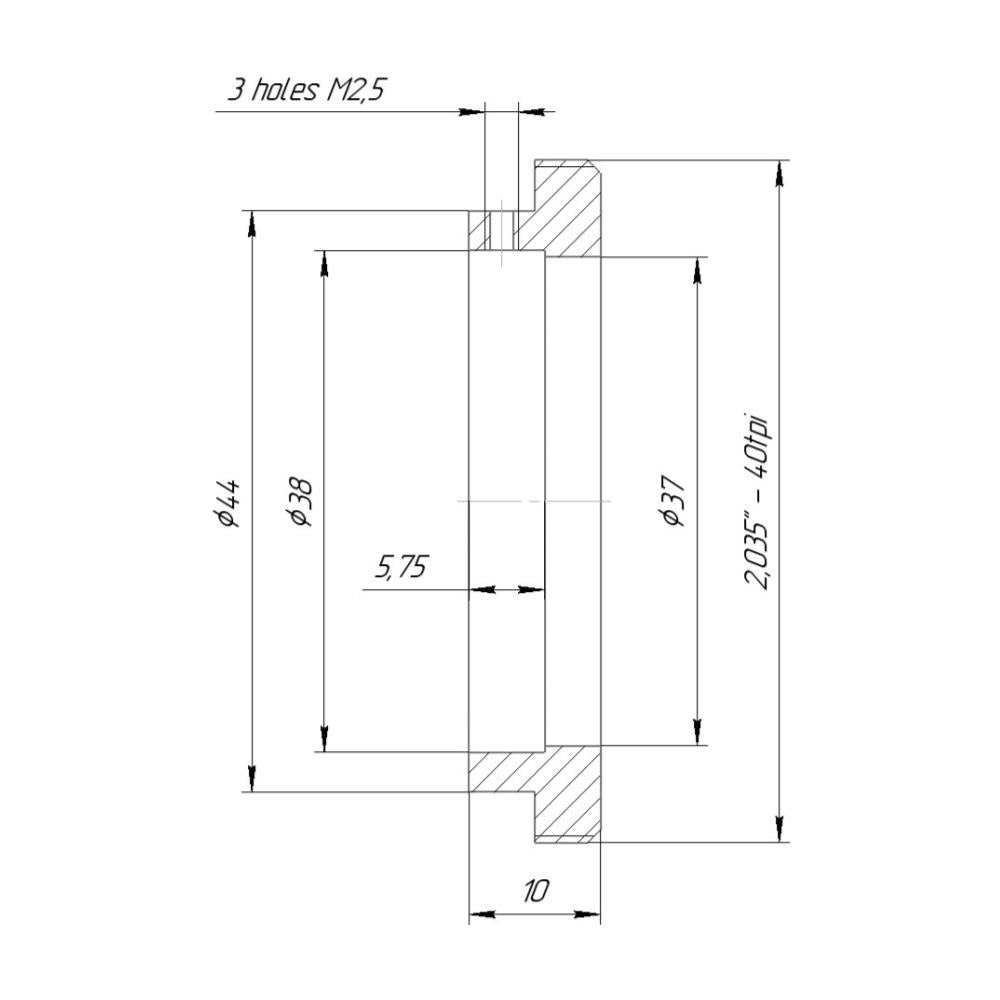 This adapter allows using lenses with so-called V38 mount (like Schneider Macro-Symmar) on Thorlabs tubes with SM2 thread.