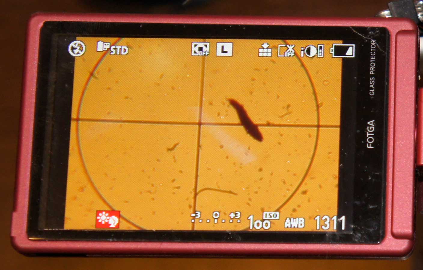 This adapter allows using a camera (film or digital) with a microscope to take hi-res pictures of micro world.