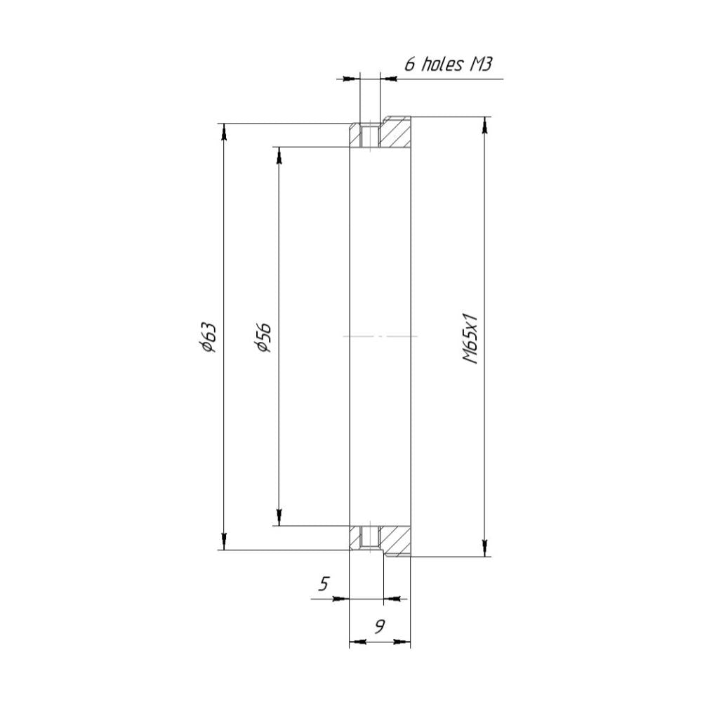 56mm clamp to M65x1 male thread adapter