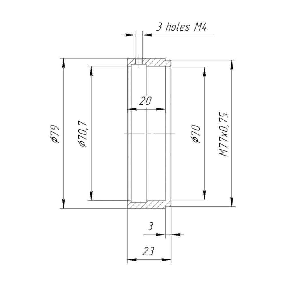 71mm clamp to M77x0.75 male thread adapter (for Schneider Cinelux lenses)