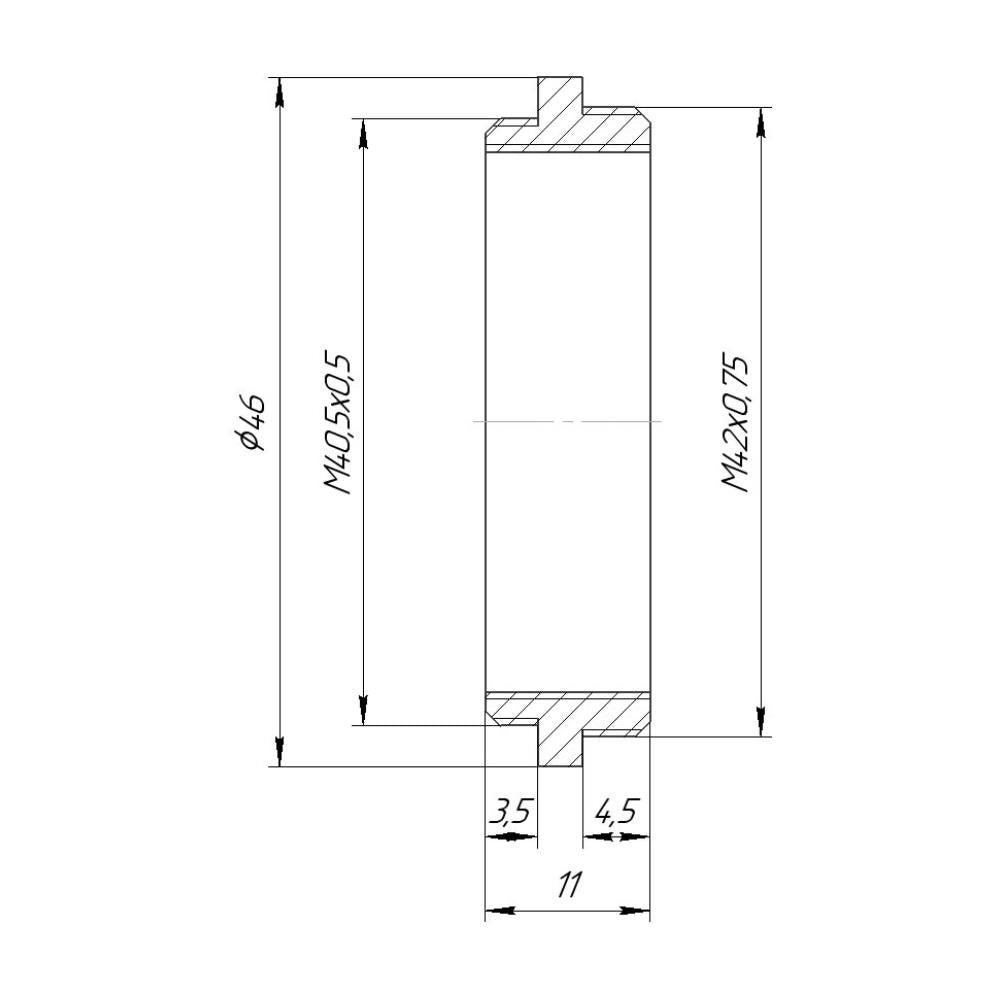 M40.5x0.5 male to M42x0.75 (T2) male thread adapter
