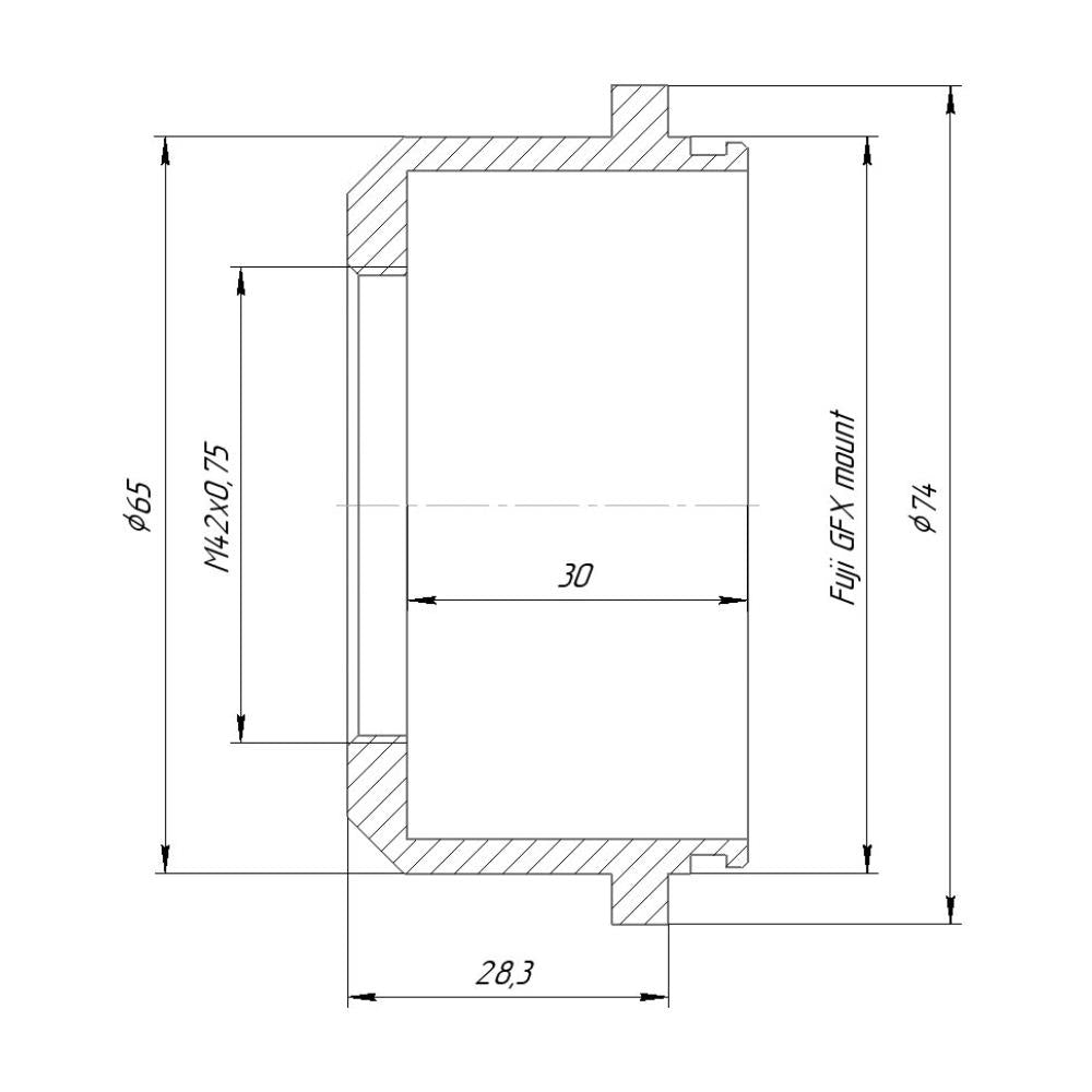 M42x0.75 female thread to Fujifilm GFX camera mount adapter