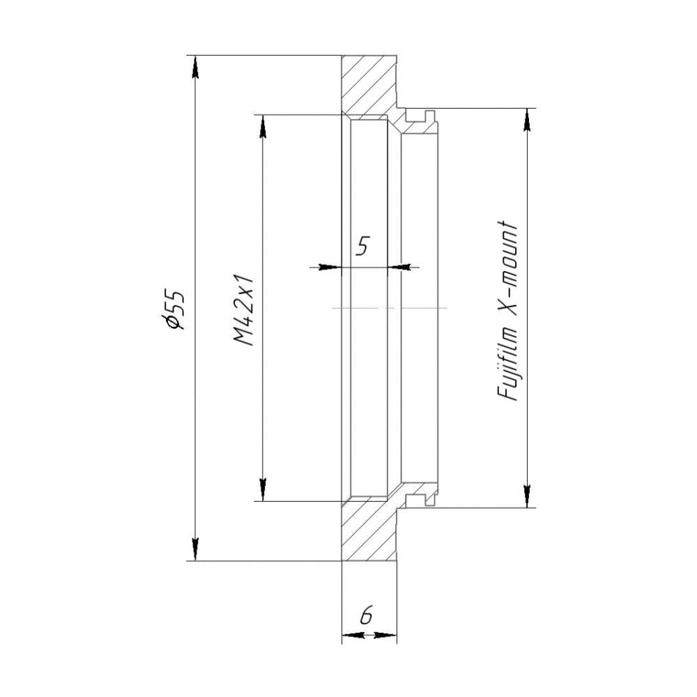 This adapter allows using focusing helicoids with M42x1 thread mount on cameras with Fujifilm X-mount.