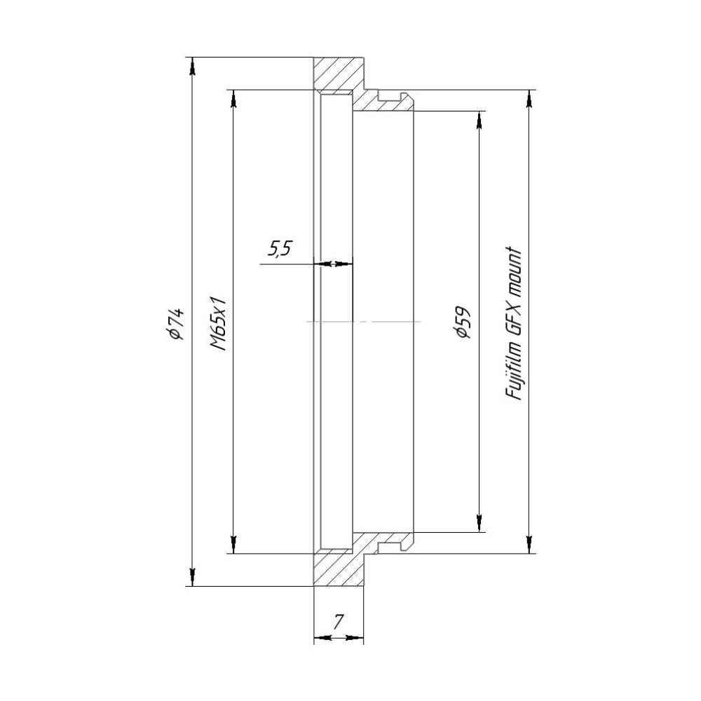M65x1 female thread to Fujifilm GFX camera mount adapter