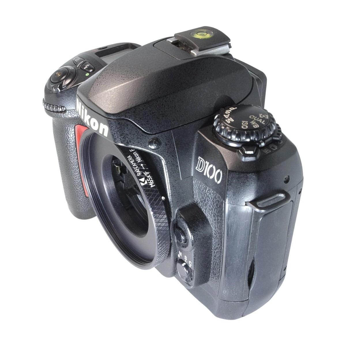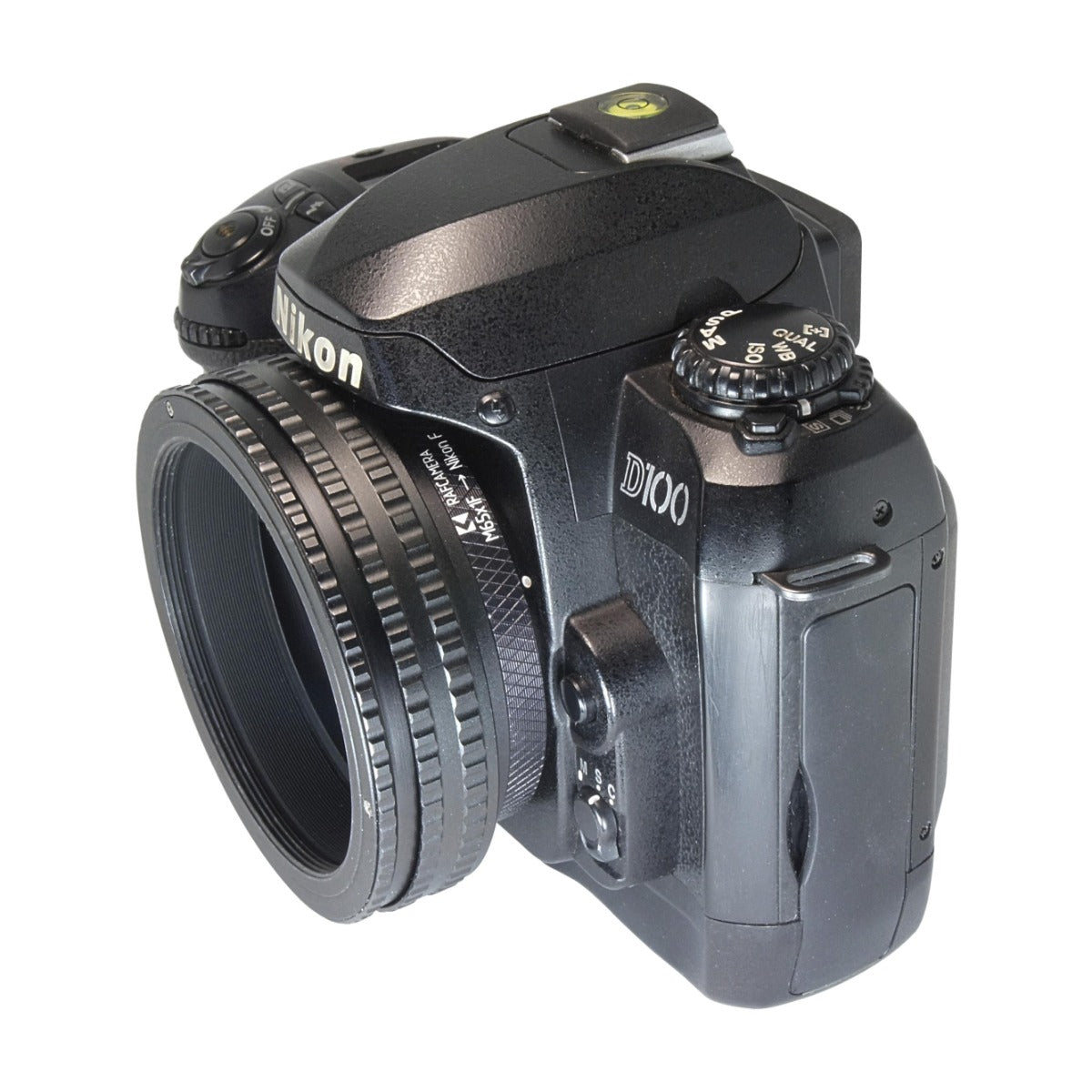 This adapter allows using large focusing helicoids on cameras with Nikon F mount.