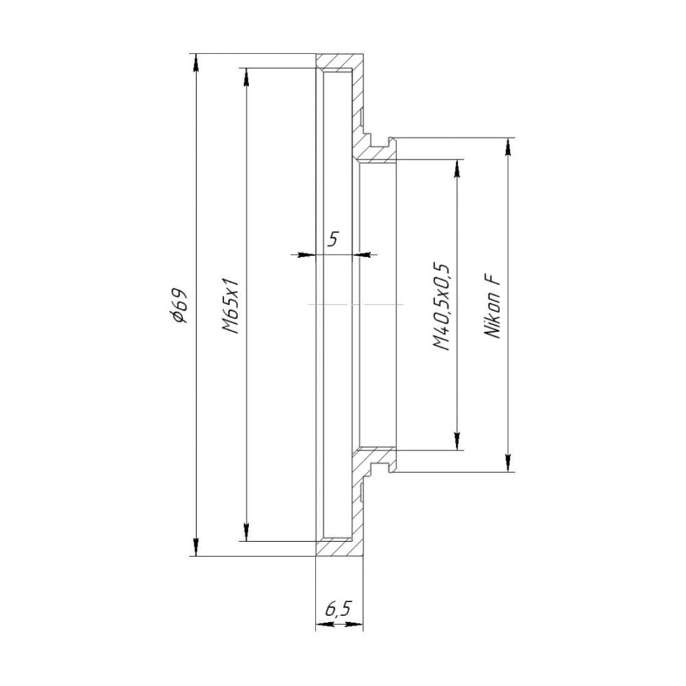 M65x1 female thread to Nikon F camera mount adapter
