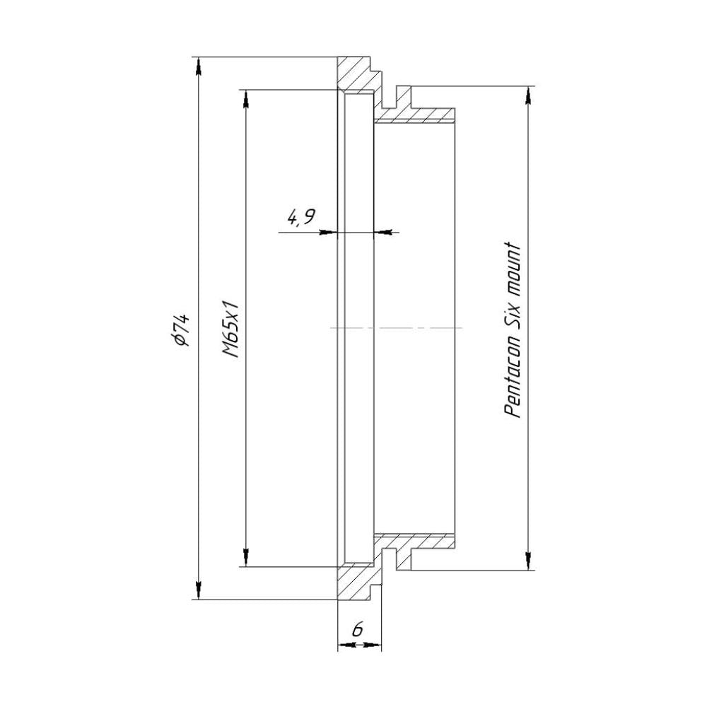 This adapter allows using focusing helicoids with M65x1 thread mount on cameras with Pentacon Six mount.