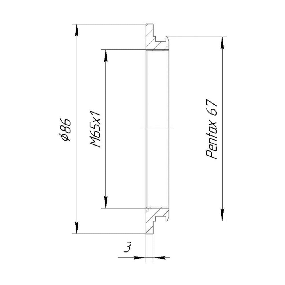 M65x1 female thread to Pentax 67 camera mount adapter, 3mm flange
