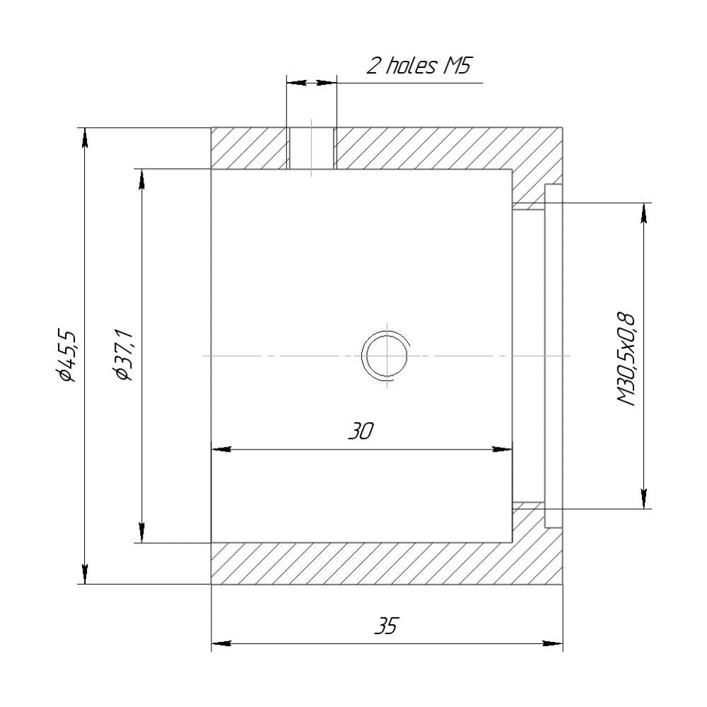 Front side - M30.3x0.8 (1.2″-32tpi) thread